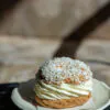 Ptyś z kremem pistacjowym i konfiturą z czerwonej porzeczki